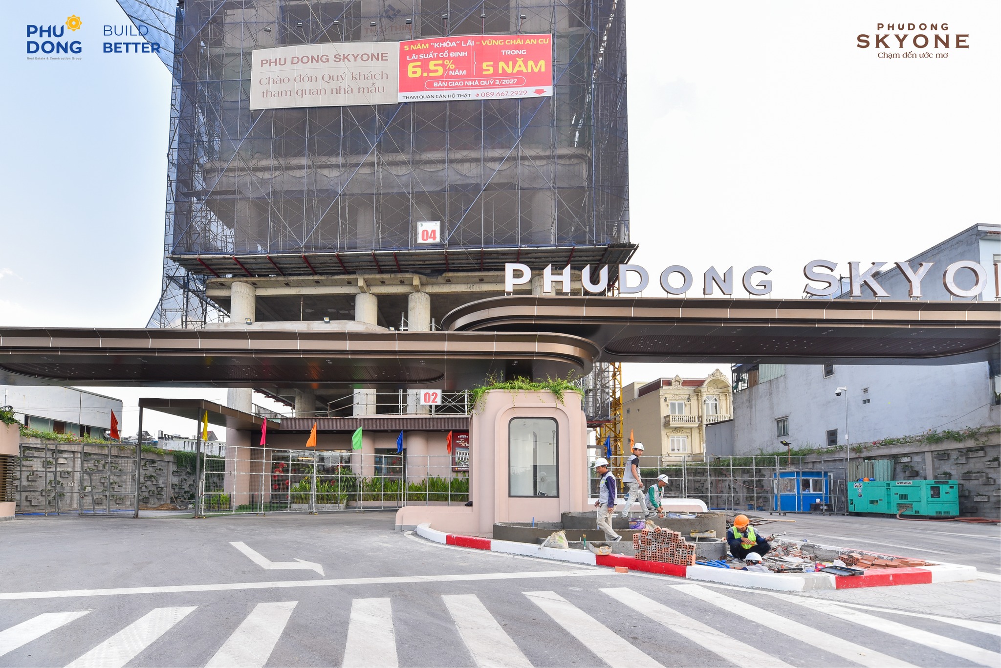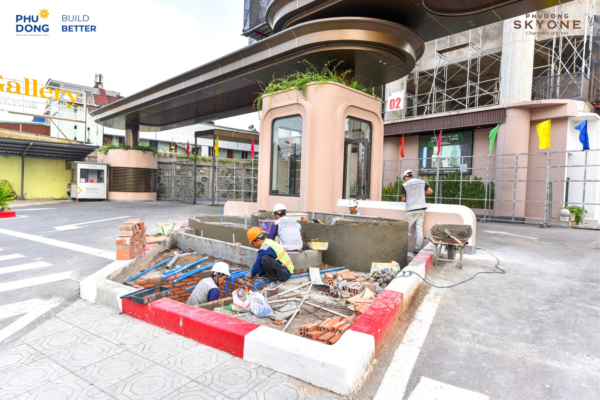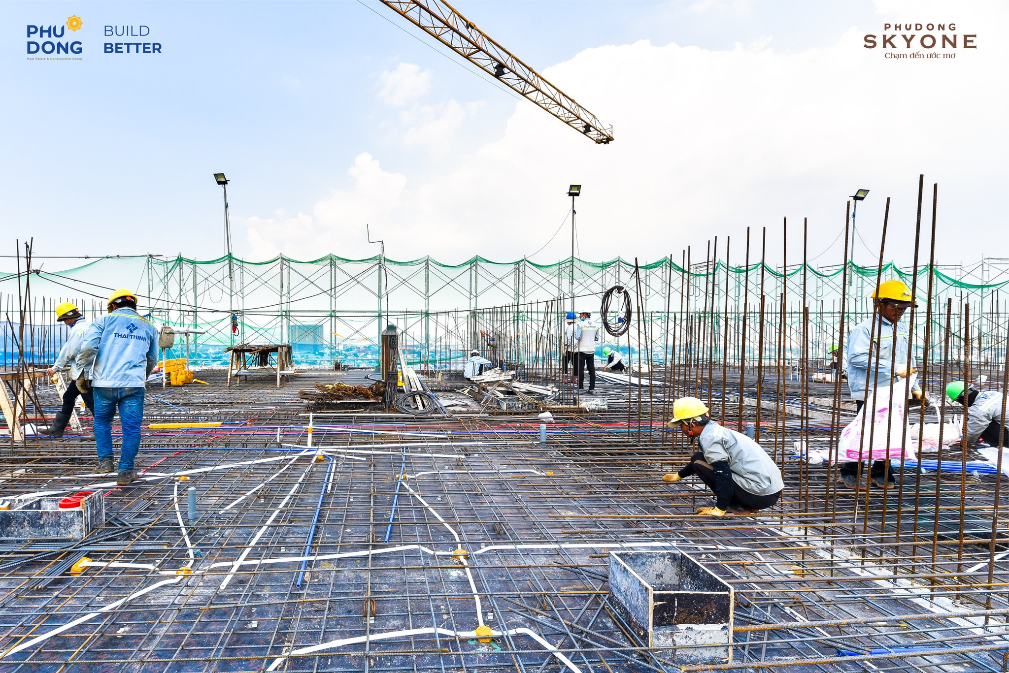 Công trình Phú Đông SkyOne hiện đang thi công đến tầng 26. Song song đó, các hạng mục như hồ nước cảnh quan và xây tường tại tầng 9A, 10B cũng đang được triển khai đồng bộ.